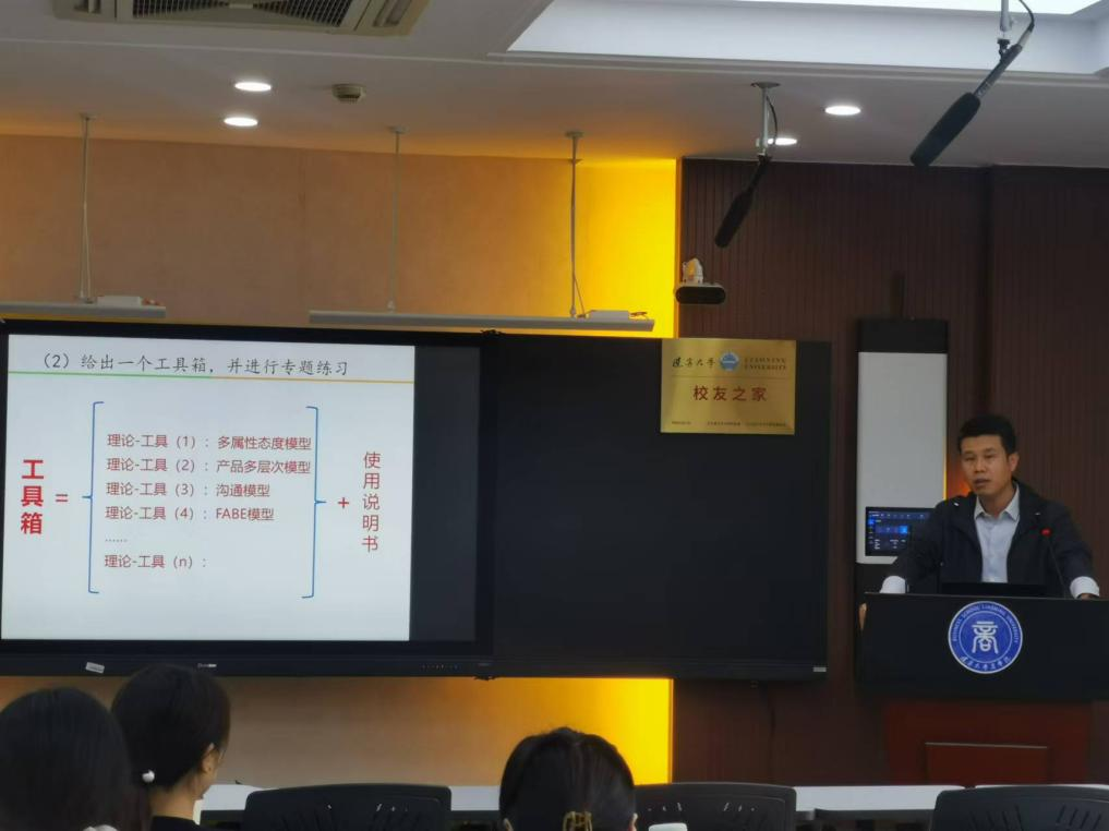 李四化老师以“营销课程教学中的情境逻辑及其应用”为主题,回应了教学过程中普遍存在的理论与实践相脱节的问题,强调课堂教学应该在讲授理论知识的同时为学生提供工具箱或使用说明书,让学生知其然、知其所以然、知其不然。