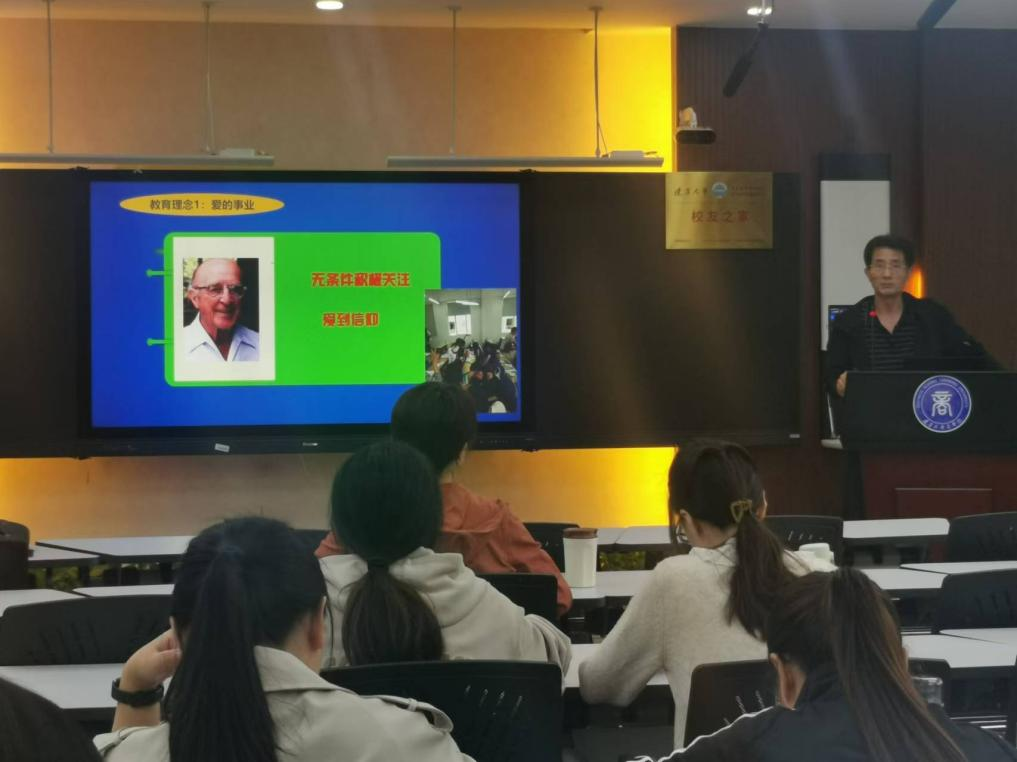 王鉴忠老师以“成为一名好老师的‘道’与‘术’”为主题,剖析了作为大学教师的意义,并从“道”的角度分享了爱的事业、启蒙、创意教学+励志教学以及POB模式,从“术”的角度分享了微成长积极教育方法。
